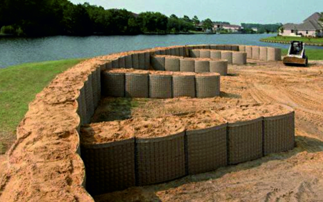 – для укрепления насыпей автомобильных и железных дорог, речного и морского берегового укрепления, ландшафтных работ, стабилизации почвенной эрозии и консервации.